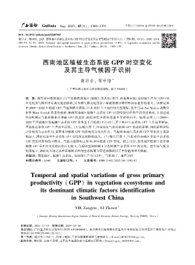 谢宗音ꎬ 黎珍惜ꎬ 2025. 西南地区植被生态系统 GPP 时空变化及其主导气候因子识别 [J]. 广西植物ꎬ 45(8): 1380-1391.