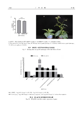 A. 烟草第一朵花开放时间ꎻ B. 野生型烟草生长表型ꎻ C. 转基因烟草生长表型ꎻ . 差异显著(P<0.001)ꎮ