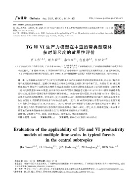贾玉伟ꎬ 顾大形ꎬ 秦佳双ꎬ 等ꎬ 2025. TG 和 VI 生产力模型在中亚热带典型森林多时间尺度的适用性评价 [J]. 广西