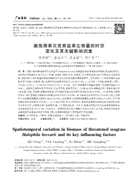 邱思婷ꎬ 盘远方ꎬ 苏治南ꎬ 等ꎬ 2026. 濒危海草贝克喜盐草生物量的时空变化及其关键影响因素 [J]. 广西植物ꎬ 46(1):