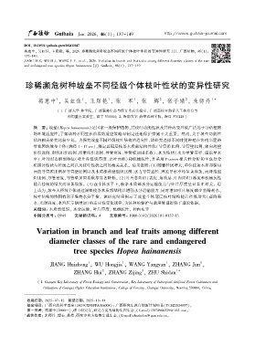 蒋惠中ꎬ 吴虹佳ꎬ 王阳艳ꎬ 等ꎬ 2026. 珍稀濒危树种坡垒不同径级个体枝叶性状的变异性研究 [J]. 广西植物ꎬ 46(1):