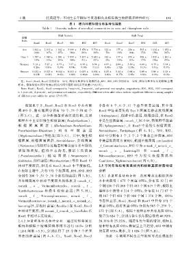 表 1 根内和根际微生物多样性指数