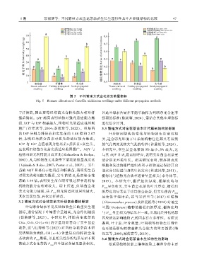 其次是实生苗ꎬ再次是扦插苗ꎮ 显著 低 于 组 培 苗ꎬ这 与 宋 碧 玉 等 ( 2017) 对 蜡 梅