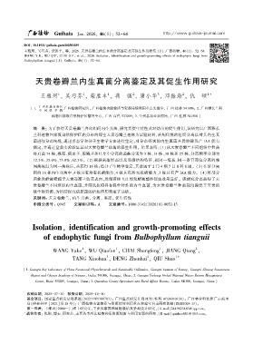 王雅珂ꎬ 吴巧芬ꎬ 柴胜丰ꎬ 等ꎬ 2026. 天贵卷瓣兰内生真菌分离鉴定及其促生作用研究 [J]. 广西植物ꎬ 46(1): 52-64.