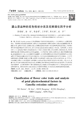 聂瑞敏ꎬ 徐剑ꎬ 陈盛通ꎬ 等ꎬ 2026. 滇山茶品种的花色性状分类及花瓣理化因子分析 [J]. 广西植物ꎬ 46(2): 220-234.