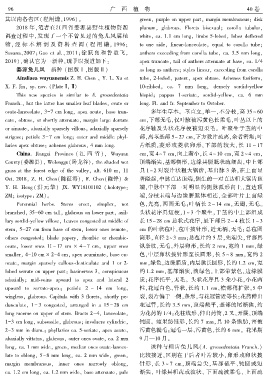 lobed serrate on upper partꎻ basinerves 3ꎬ conspicuous 约 1.2 mmꎬ基部渐狭ꎬ淡绿色ꎬ上部带紫色ꎬ边缘膜