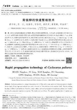 HUANG NZꎬ SU Jꎬ XIAN KHꎬ et al. Rapid propagation technology of Cyclocarya paliurus [J]. Guihaiaꎬ 2020ꎬ 40(1): 108-118.