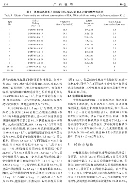 表 5 基本培养基和不同浓度 IBA、NAA 或 IAA 对青钱柳生根影响