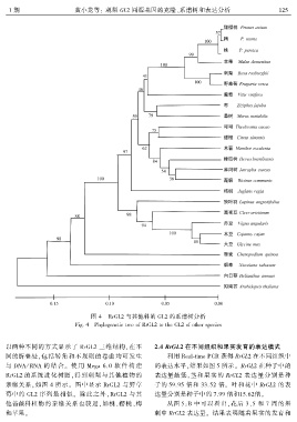 RrGL2 的系统进化树图ꎬ得到刺梨与其他植物的 表达量最低ꎬ茎和果实的 RrGL2 表达量分别是种