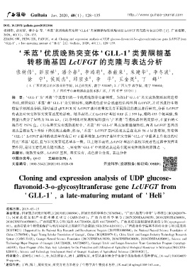 张树伟ꎬ 彭宏祥ꎬ 潘介春 等. ‘禾荔’优质晚熟突变体‘GLL ̄1’类黄酮糖基转移酶基因 LcUFGT 的克隆与表达分析 [J]. 广西植物ꎬ