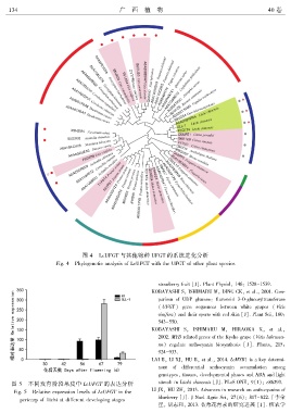 图 5 不同发育阶段果皮中 LcUFGT 的表达分析 stimuli in Litchi chinensis [J]. PLoS ONEꎬ 9(1): e86293.
