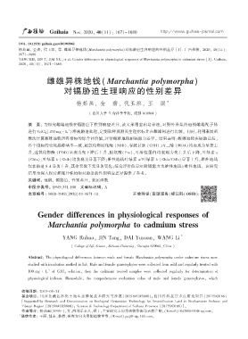 杨茹画ᖔ 金瑭ᖔ 代玉烜ᖔ 等 雌雄异株地钱ྉ᤹ᐹʗዞ၊ᐹႥᡙᔠᐹ ᡓᅳᤀᡥቂᅳʗᡓ၊ᐹɯ对镉胁迫生理响应的性别差异 ЏȮ 广西植物ᖔ ԡԡᖔ ࿗ԡྉϟϟɯ᧥
