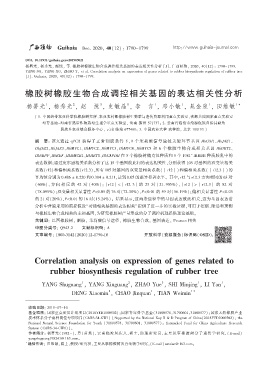 杨署光ᖔ 杨秀光ᖔ 赵悦ᖔ 等 橡胶树橡胶生物合成调控相关基因的表达相关性分析 ЏȮ 广西植物ᖔ ԡԡᖔ ࿗ԡྉϟɯ᧥ ϟᎮँԡͱϟᎮँँ