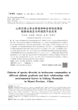 张世雄ᖔ 秦瑞敏ᖔ 杨晓艳ᖔ 等 山西吕梁山草本群落物种多样性的海拔梯度格局及与环境因子的关系 ЏȮ 广西植物ᖔԡԡᖔ