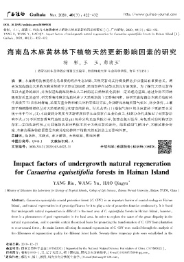 YANG Bꎬ WANG Yꎬ HAO QY. Impact factors of undergrowth natural regeneration for Casuarina equisetifolia forests in Hainan Island [J].