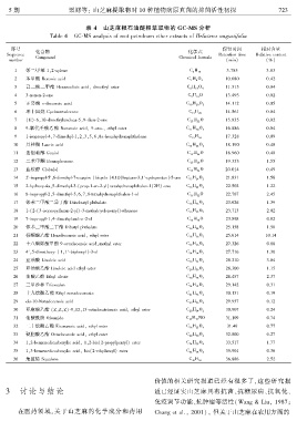 表 4 山芝麻根石油醚相萃取物的 GC ̄MS 分析