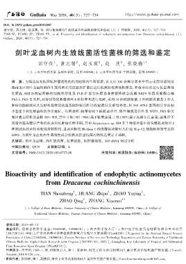 TIAN SZꎬ HUANG ZPꎬ ZHAO YYꎬ et al. Bioactivity and identification of endophytic actinomycetes from Dracaena cochinchinensis [ J].