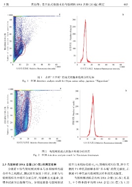 2.3 乌饭树核 DNA 含量(2C ̄值)的测定结果 样本与水稻标样的 G / G 期峰值相对位置ꎬ图中左