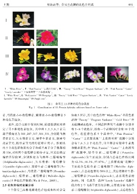 苷、芍药素 ̄3 ̄O ̄葡萄糖苷、锦葵素 ̄3 ̄O ̄葡萄糖苷 5 如表 5 所示ꎬ其中白色品种‘White River’和黄色系