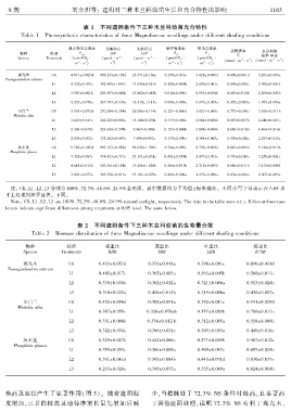 Table 2 Biomass distribution of three Magnoliaceae seedlings under different shading conditions