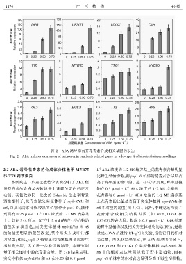 Fig. 2 ABA induces expression of anthocyanin synthesis related genes in wild ̄type Arabidopsis thaliana seedlings