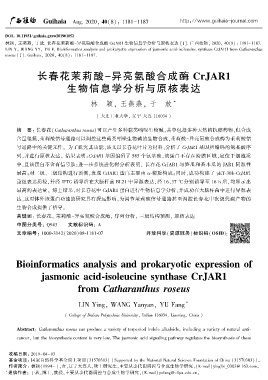 林颖ꎬ 王燕燕ꎬ 于放. 长春花茉莉酸-异亮氨酸合成酶 CrJAR1 生物信息学分析与原核表达 [J]. 广西植物ꎬ 2020ꎬ 40(8): 1181-1187.