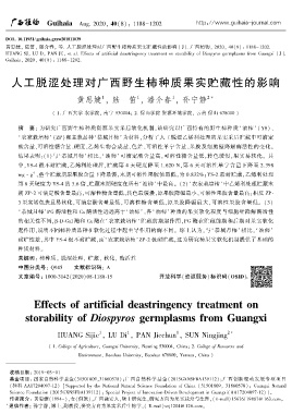 黄思婕ꎬ 陆笛ꎬ 潘介春ꎬ 等. 人工脱涩处理对广西野生柿种质果实贮藏性的影响 [J]. 广西植物ꎬ 2020ꎬ 40(8): 1188-1202.