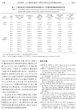 乙烯利 YS ̄2 0.673∗∗ 0.948∗∗ -0.869∗∗ 0.512∗ 0.573∗∗ -0.547∗