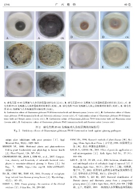 A. Confrontation culture of Chaetomium globosum FS ̄01 fermentation broth and Alternaria panax (reverse side)ꎻ B. Confrontation culture of Chaeto ̄