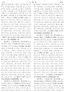34.0(C ̄25)ꎬ 19.0( C ̄26)ꎬ 21.1( C ̄27)ꎬ 24.3( C ̄ 5′)ꎬ 63. 3 ( C ̄6′)ꎮ 以 上 数 据 与 文 献 ( 黄 斌 等ꎬ