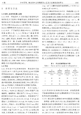 1.2 方法 Table 1 Factor and level graph of orthogonal test