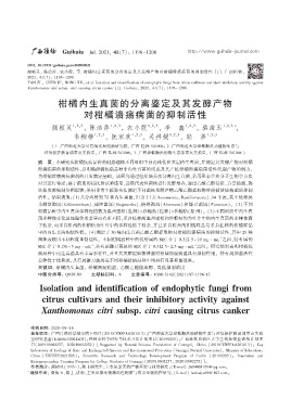 颜桢灵ᖔ 陈洁萍ᖔ 农小霞ᖔ 等 柑橘内生真菌的分离鉴定及其发酵产物对柑橘溃疡病菌的抑制活性 ЏȮ 广西植物ᖔ