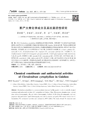 霍晓敏ꎬ 李丽君ꎬ 冉坚强ꎬ 等ꎬ 2023. 黔产大青化学成分及其抗菌活性研究 [J]. 广西植物ꎬ 43(1): 155-164.