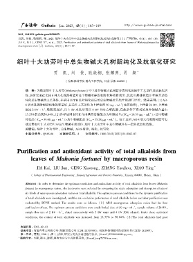 贾凯ꎬ 刘俊ꎬ 耿晓桐ꎬ 等ꎬ 2023. 细叶十大功劳叶中总生物碱大孔树脂纯化及抗氧化研究 [J]. 广西植物ꎬ 43(1): 183-189.
