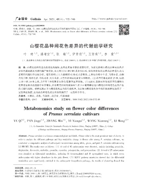 叶琦ᖔ 潘靖宜ᖔ 张敏ᖔ 等ᖔԡሕ 山樱花品种间花色差异的代谢组学研究 ЏȮ 广西植物ᖔ ࿗ሕྉ࿗ɯ᧥ ᎮሕͱᎮ࿗ԡ