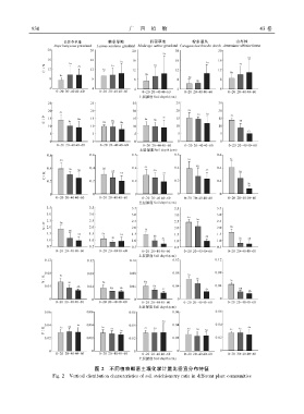 9 3 0 广 西 植 物 43 卷 图 2 不同植物群落土壤化学计量比垂直分布特征 Fig. 2 Vertical distribution characteristics of soil stoichiometry ratio in different plant communities