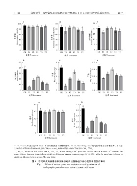 T1、T2、T3、T4、T5 表示在 0.4 mmolL 肉桂酸胁迫下分别添加 0、12.5、25、50、100 mgmL 的马铃薯根系分泌物处理ꎮ 不同小