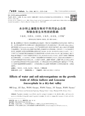 石磊琦ꎬ 刘梓钰ꎬ 王超俊ꎬ 等ꎬ 2024. 水分和土壤微生物对干热河谷山合欢和银合欢生长性状的影响 [J]. 广西植物ꎬ