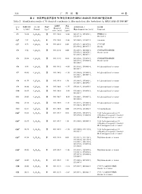 表 2 中药库拉索芦荟中 78 种化学成分的 HPLC ̄DAD ̄IT ̄TOF ̄MS 鉴定结果