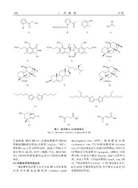通过测定化合物 1、2、3、5、6、10 人质控血浆 6 对 APTT 有微弱缩短作用ꎬ化合物 1、5、6 对 PT